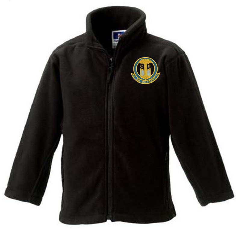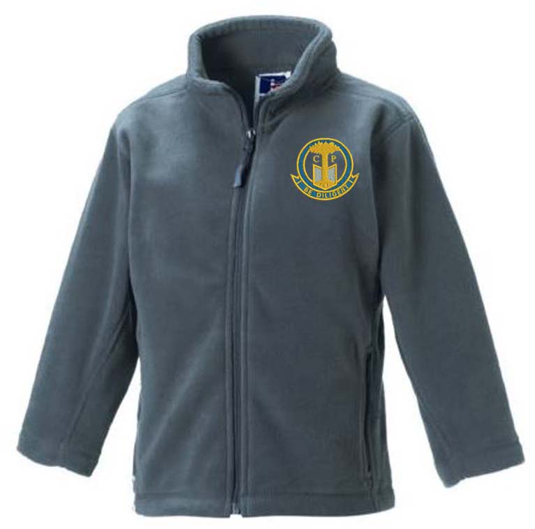 Russell Kids Fleece. A hard wearing school sweatshirt with your school logo embroidered on the left chest. Available in Grey or Black, please select colour required.